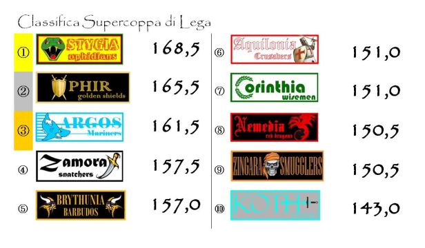 Meglio ancora è andata in Supercoppa. Grazie alla contemporanea realizzazione del proprio miglior punteggio dell’anno e alla fantastica prestazione giornaliera in quanto a bonus (4 punti sui cinque disponibili), gli Ophidians si sono presi la vetta. Con una difesa che garantisce punti tutte le settimane vedremo adesso se e quando qualcuno sarà in grado di scalzarli da lì.