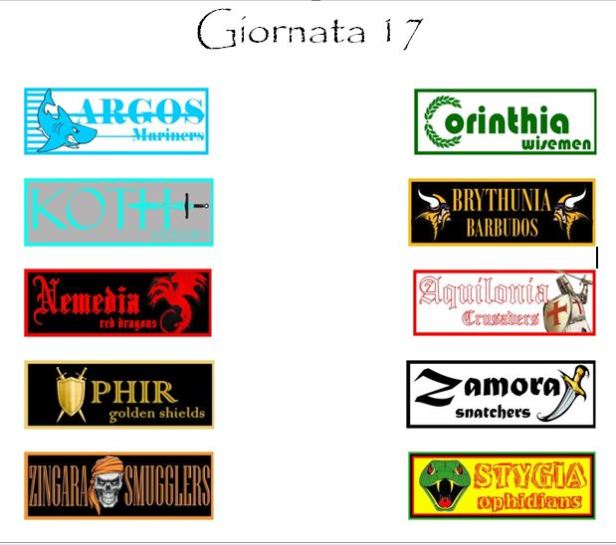 Tolti questi importantissimi scontri al vertice gli occhi saranno puntati tutti sul Belverus Dome di Nemedia stadio nel quale andrà in scena il derby d’Hyboria: Aquilonia, che già all’andata vinse nettamente (3-0: Lulic, Ilicic, Quagliarella), parte favorita e ha l’occasione di allungare la striscia positiva e di recuperare ulteriore terreno sulle franchigie che la precedono.
