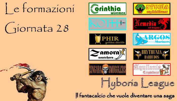 Ed anche per questa giornata è tutto. Le formazioni sono pronte e noi ci proiettiamo direttamente su twitter per “Tutta l’Hyboria League minuto per minuto” che quest’oggi andrà in onda in versione ridotta visti gli impegni lavorativi che mi impediranno di seguire come si dovrebbe le due partite previste per le 18:00 e il big match delle 20:45 tra Juventus e Milan.