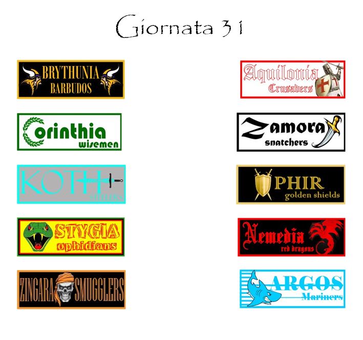 Il quadro della giornata sarà completato dalla sfida di Pirogia tra Brythunia e Aquilonia. I Barbudos non hanno più nulla da chiedere a questo Campionato mentre i Crusaders possono sperare ancora di riagganciare il treno per il terzo posto. La partita sarà di quelle da tenere comunque sott’occhio visto lo spettacolo dei tre precedenti stagionali (una vittoria per parte e un pareggio) che ci hanno regalato ben quindici gol e punteggi di tutto rispetto.