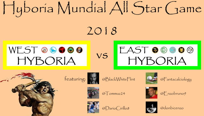 E’ tempo di All Stars Game. Avevo abbandonato questa bellissima idea in novembre quando la nostra nazionale era stata tristemente eliminata dalla Svezia. Mi era decisamente passata la voglia e inoltre credevo che, mancando i nostri nazionali, sarebbe stato molto più complicato metterla in pratica. Nei giorni scorsi, tuttavia, spinto un po’ dalle provocazioni di alcuni amici di twitter su un fantomatico Hyboria Mundial, mi sono rimesso in moto. “Maccarone… m’hai provocato e io te distruggo, maccarone! Io me te magno!”. Ma cos’è l’All Stars Game d’Hyboria? Calma. Tutte le mie contorte invenzioni hanno bisogno di essere spiegate per benino, dovreste saperlo ormai. Portate pazienza e leggete le prossime duemila righe. Giunti alla fine dovrebbe esservi tutto abbastanza chiaro. Altrimenti potete sempre ricominciare. Repetita iuvant.