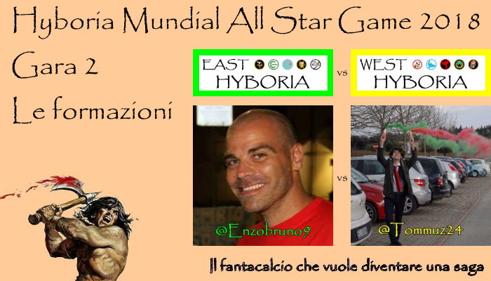 Non è ancora ufficiale il risultato di Gara Uno che è già tempo di presentarvi le formazioni di Gara Due. La formula del mondiale impone ritmi vertiginosi e i nostri fantallenatori lo sanno benissimo. Sul ring dell Maul Camp di Shadizar si sfideranno questa volta coach @Enzobruno9, cui è stata affidata la panchina di East Hyboria, e coach @Tommuz24, cui invece spetterà il compito di guidare West Hyboria.