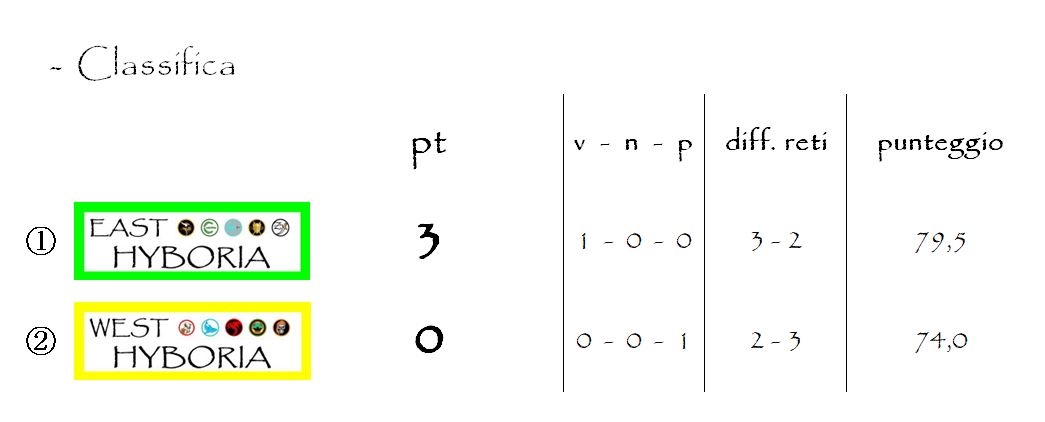 Per West Hyboria e per @BlackWhiteFlint si può parlare di una mezza disfatta? Forse sì. L’occasione di giocarsi due partite su tre in casa era molto importante e andava sfruttata meglio. Il Capitano è però andato a sbattere dritto contro i limiti di una rosa che di potenziale ne ha, ma che non può metterlo in mostra come vorrebbe. Le scelte di Sampaoli e di qualche altro allenatore rischiano di penalizzare moltissimo i Bianco-Oro in queste tre gare. Avere Dybala, Higuain, Fazio e Douglas Costa in squadra e non poterli sfruttare, neanche a rotazione, è un vero peccato. Senza contare che la rappresentativa dell’Ovest si è vista negare la convocazione di altri importanti giocatori come Nainggolan e Icardi (solo per citarne alcuni).