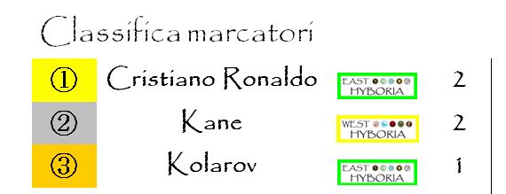 Una delle reti siglate di Cristiano Ronaldo in questa prima giornata di Russia 2018 è andata “persa”. East Hyboria, infatti, ha mancato la soglia del quarto gol di due punti e mezzo. A decadere, come da regolamento Hyboria League (paragrafo 7.2), il gol segnato su rigore al quarto minuto di Spagna-Portogallo.