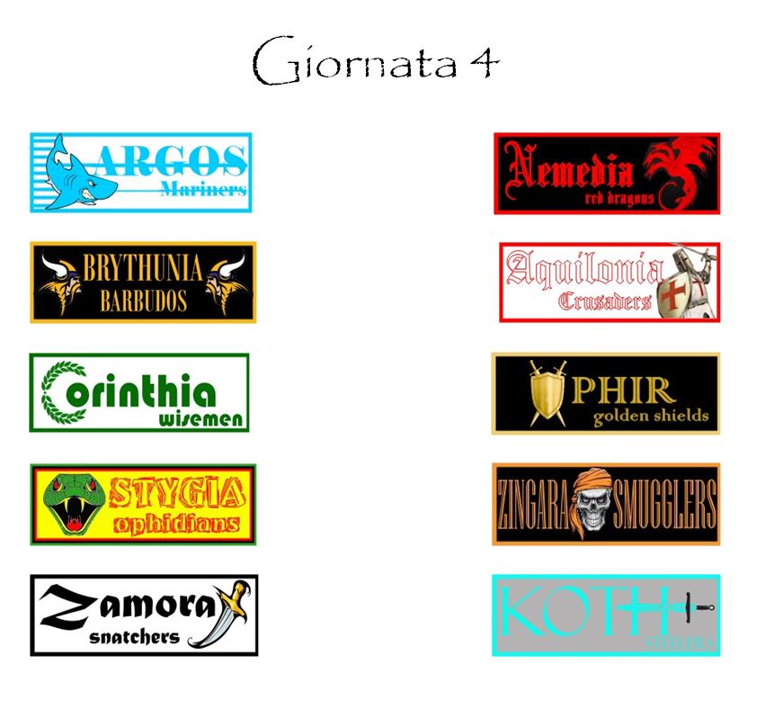 La prossima giornata, che parte tra pochissime ore, vedrà la capolista Stygia tornare tra le mura amiche dopo le due vittoriose trasferte di Ophir e Nemedia. Gli Ophidians ospiteranno Zingara in una gara che sembra più che scontata. Vedremo se gli Smugglers riusciranno a tirare fuori una prestazione inattesa riuscendo ad impensierire la corazzata del Sud. L’anno scorso Stygia vinse entrambi i confronti che si giocarono a Khemi, il primo dei quali con un roboante 6-2. Era l’ottava giornata.