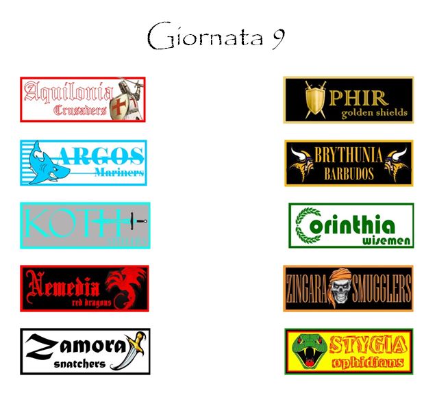 Il quadro degli incontri sarà chiuso da Koth–Corinthia e Nemedia–Zingara, due partite che coinvolgeranno le quattro squadre in cerca d’autore di questo inizio di stagione. Per il sottoscritto si tratta di due risultati da tripla.