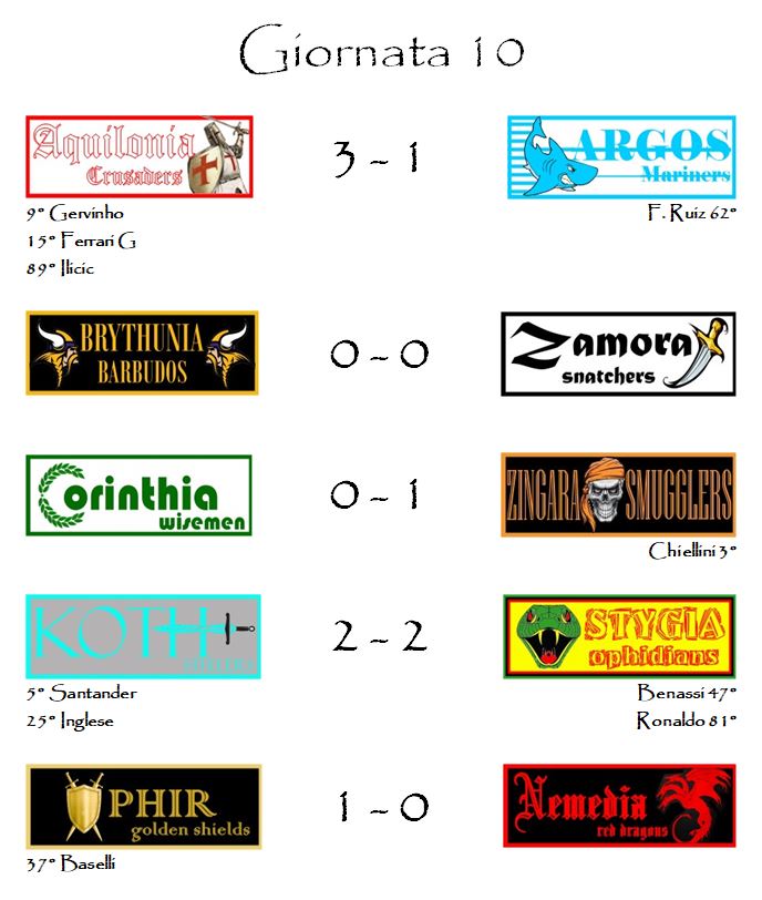 Due invece le marcature extra: una è andata ad Ilicic degli Aquilonia Crusaders e l’altra a Chiellini degli Zingara Smugglers.