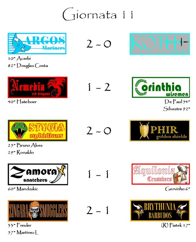 Alle spalle della coppia di testa abbiamo gli Aquilonia Crusaders che sono però usciti dal Maul Camp di Shadizar senza vincere e con tantissimi rimpianti. In questo caso è stato ancor più pesante l’errore commesso dai nostri followers venerdì negli #Hyballottaggi. L’esclusione di Quagliarella (in rete nel derby della Lanterna) a beneficio di Ilicic (espulso nel finale di Empoli-Atalanta) ha fatto perdere alla franchigia più prestigiosa del nostro fantacalcio ben sei punti. Sei punti che avrebbero significato la vittoria.
