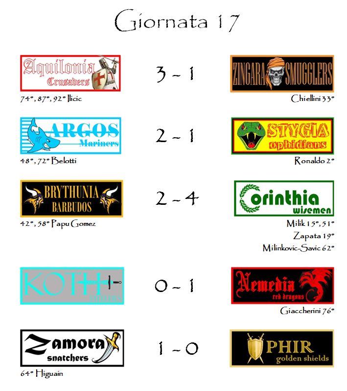 E per la diciassettesima giornata è tutto. Scusate ancora per il ritardo ma a volte servirebbero giornate di 72 ore per venire a capo di ogni cosa.