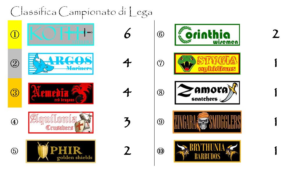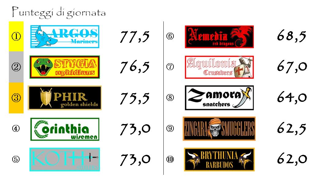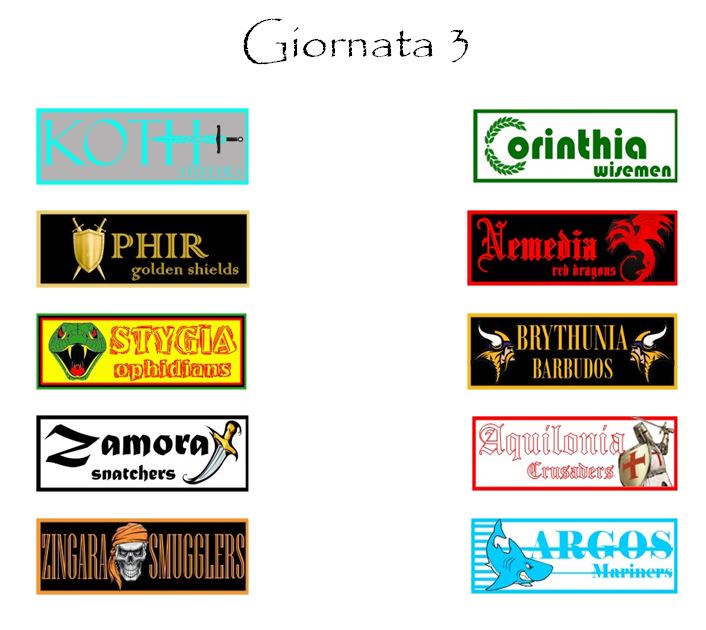 La giornata sarà chiusa da uno Stygia–Brythunia ingiustamente di bassa classifica. Ophidians e Barbudos hanno raccolto meno di quello che avrebbero meritato e si trovano in una posizione di classifica non consona alle loro rose. Vediamo chi riuscirà ad iniziare un percorso di rapida risalita verso le posizioni che merita. Gli Ophidians (notizia dell’ultim’ora) dovranno affrontare questo impegno senza Cristiano Ronaldo. Brutta tegola.