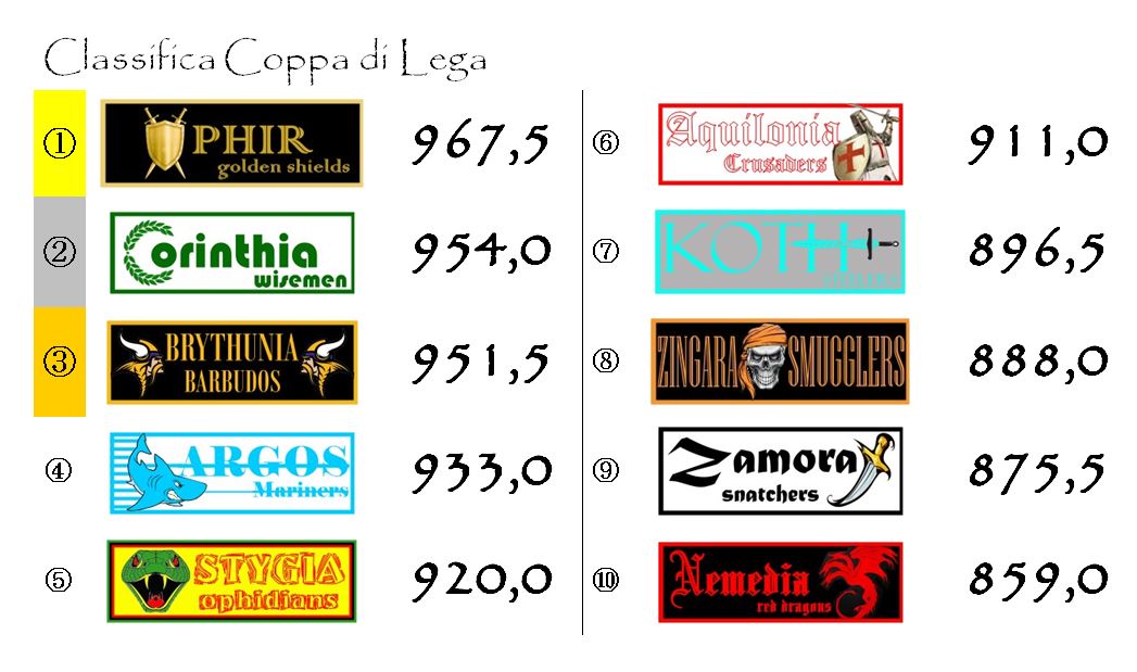 In Coppa continua a guidare Ophir che ha allungato in vetta su Corinthia e Brythunia che si sono scambiate secondo e terzo posto. Dalle retrovie continua ad avanzare una Stygia che inizia a mettere il quarto posto di Argos nel mirino.