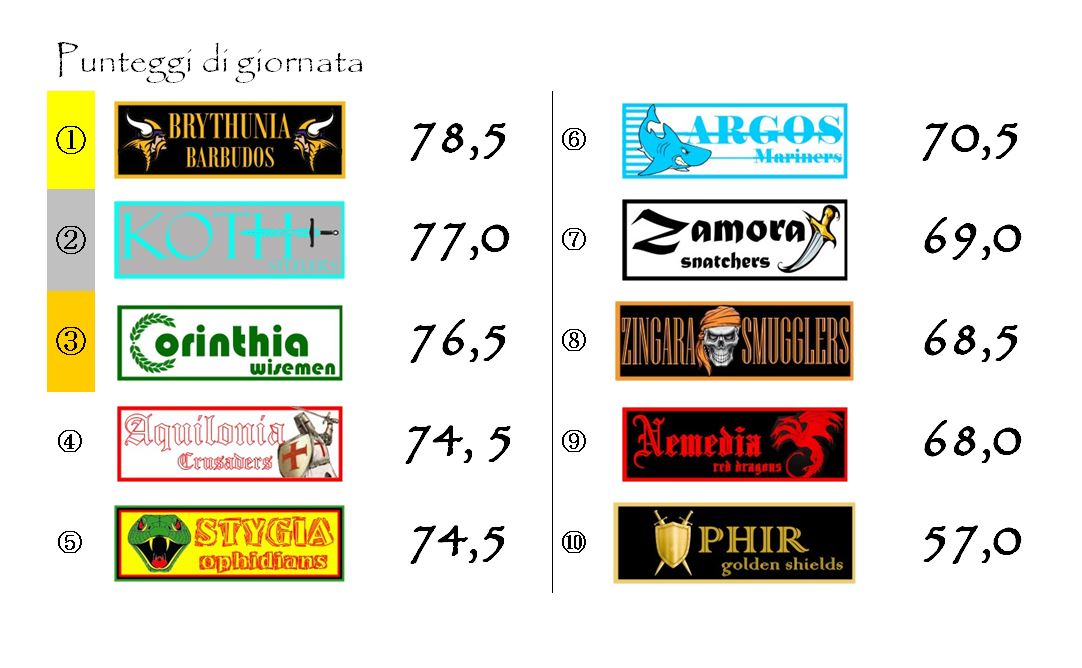 Interessante anche la sfida di Korshemish tra Koth e Brythunia con gli ospiti che saranno privi di Andrea Petagna e i padroni di casa che dovrebbero recuperare almeno alcuni degli uomini che gli erano mancati nella trasferta di Aquilonia.