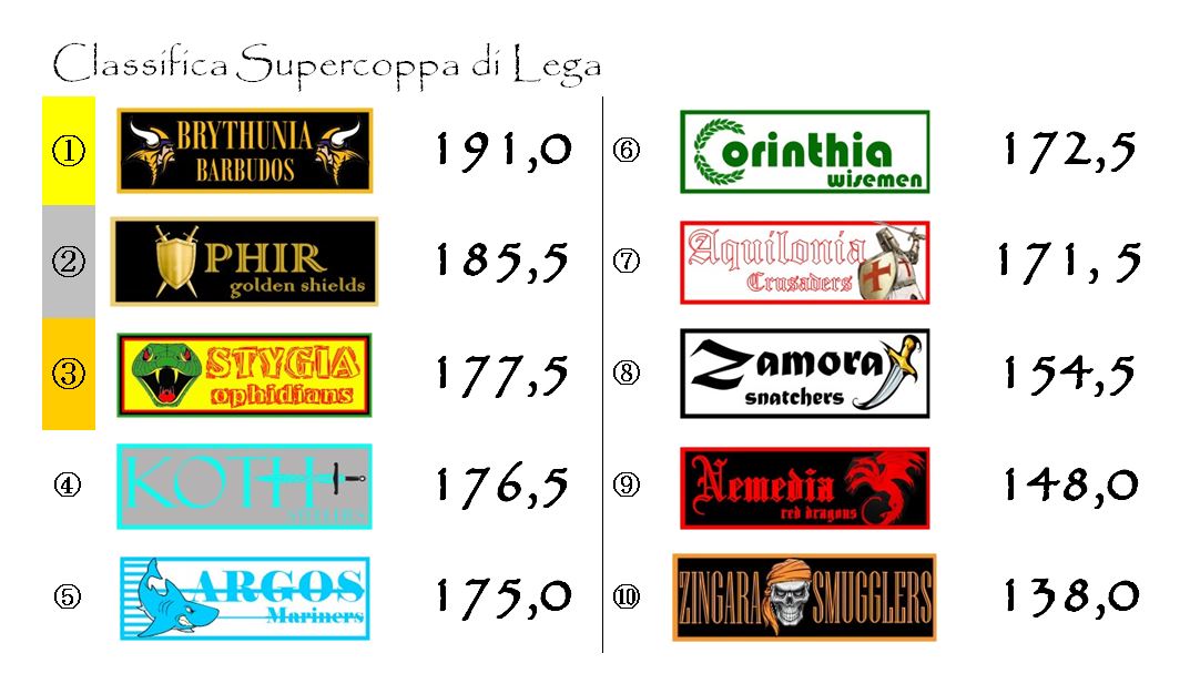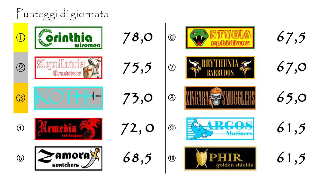 Corinthia ha sorpassato nuovamente Brythunia, riconquistando la seconda posizione, mentre Stygia e Aquilonia potranno, a pieno titolo, reclamare un ruolo da protagoniste in un’eventuale rush finale.