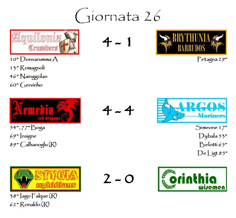 Le reti extra assegnate questa settimana sono state due e sono andate al capitano della Nemedia Insigne e al vice-Capitano di Aquilonia Romagnoli.