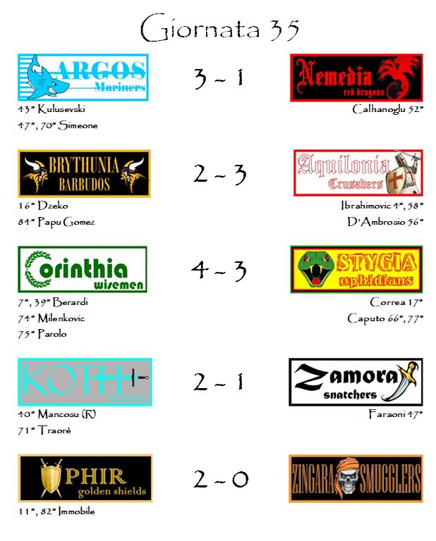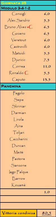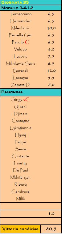 E per i risultati della trentacinquesima giornata è tutto. Vi lascio al solito file excell con tutti i risultati del dettaglio…