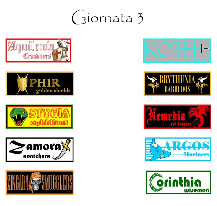 Alla terza giornata Goldens Shields e Ophidians, crollate in questo week-end, saranno chiamate ad un pronto riscatto. La differenza sostanziale è che, mentre Ophir è sicura di recuperare il suo capitano Ciro Immobile per la sfida casalinga contro la Brythunia, Stygia, con molta probabilità, dovrà di nuovo fare a meno di Cristiano Ronaldo per la sfida contro la Nemedia. Oltre al portoghese, i giallo-cerchiati saranno privi anche di Hakimi, risultato positivo al Covid-19 ieri pomeriggio. Non saranno da meno gli ospiti che recupereranno Insigne ma che hanno perso Calhanoglu.