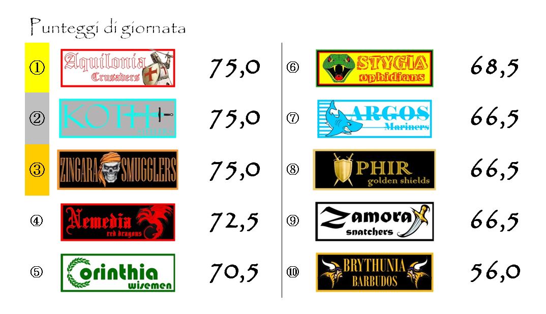 A dividersi la “V” nera sono state ben tre squadre: Aquilonia, Koth e Zingara.