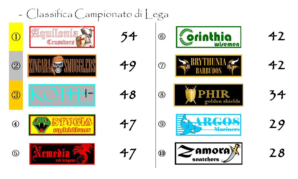 Rimane molto serrata la lotta per la terza posizione. Nemedia, Stygia e Koth sono raccolte in appena due punti. Nessuna delle tre riesce a dare lo strappo decisivo e, al contempo, nessuna delle tre commette evidenti passi falsi che possano tagliarla fuori.