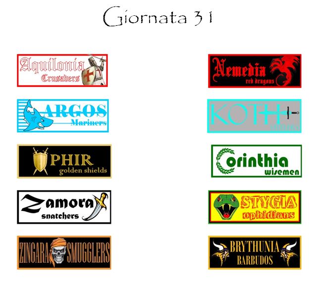 La corsa ad un posto sul podio vedrà la Stygia farà visita al fanalino di cosa Zamora, Koth andare in casa di Argos e Zingara ospitare i Brythunia Barbudos.