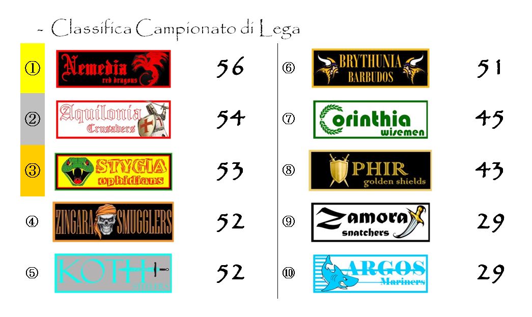 La sconfitta lascia gli Ophidians terzi, a tre punti dalla Nemedia, mentre rilancia le ambizioni di podio di Brythunia. I giallo-neri, al terzo successo consecutivo, si trovano ora a cinque punti dai Dragoni capolisti e a soli due punti dal terzo gradino del podio, occupato proprio dagli stygiani.