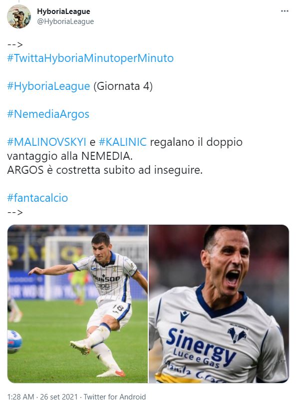 | Potete seguire gli sviluppi di ogni giornata nel live twitter intitolato #TwittaHyboriaMinutoperMinuto, un thread multiplo e diramato che si sviluppa durante tutta la durata della giornata di campionato partendo dalla presentazione delle formazioni… |