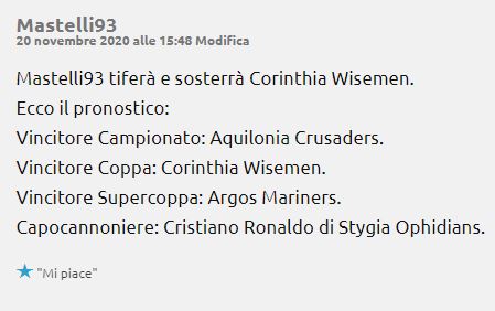 FantaMastelli aveva puntato sui Corinthia Wisemen (giunti poi terzi), mentre Ledbowski aveva pronosticato una vittoria degli Stygia Ophidians (poi arrivati secondi).