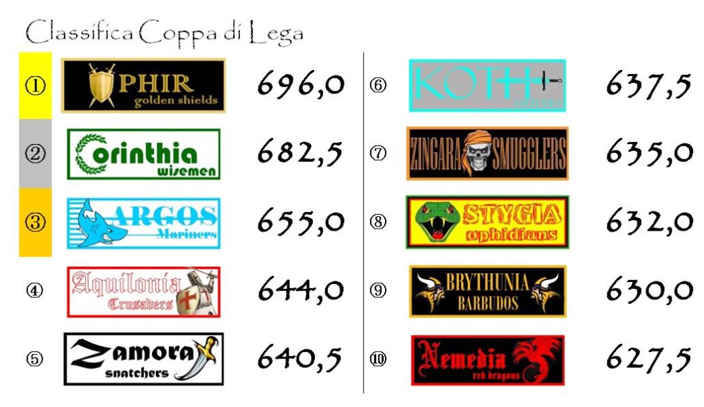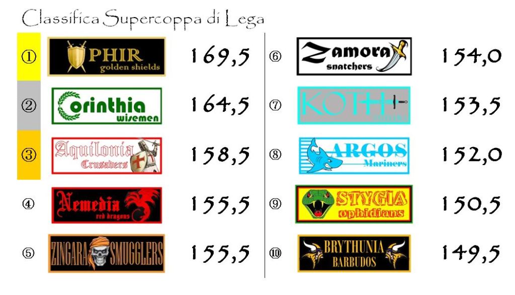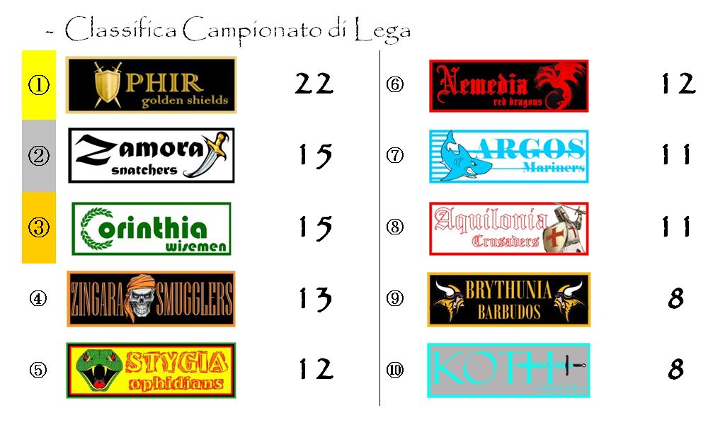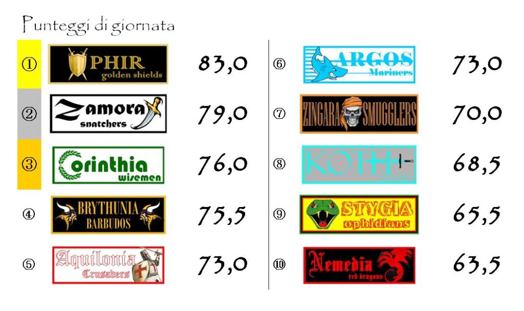 In questa giornata, tuttavia, i Golden Shields hanno perso un punto di vantaggio su sia Corinthia, prima delle inseguitrici, che su Aquilonia, attualmente terza.