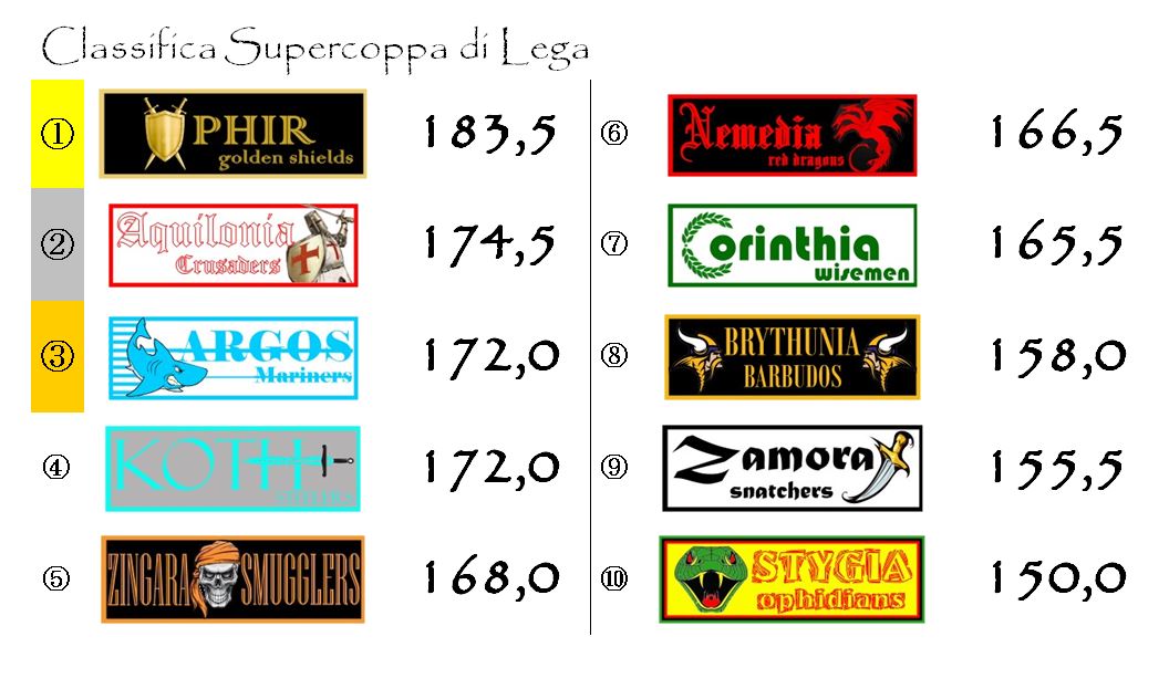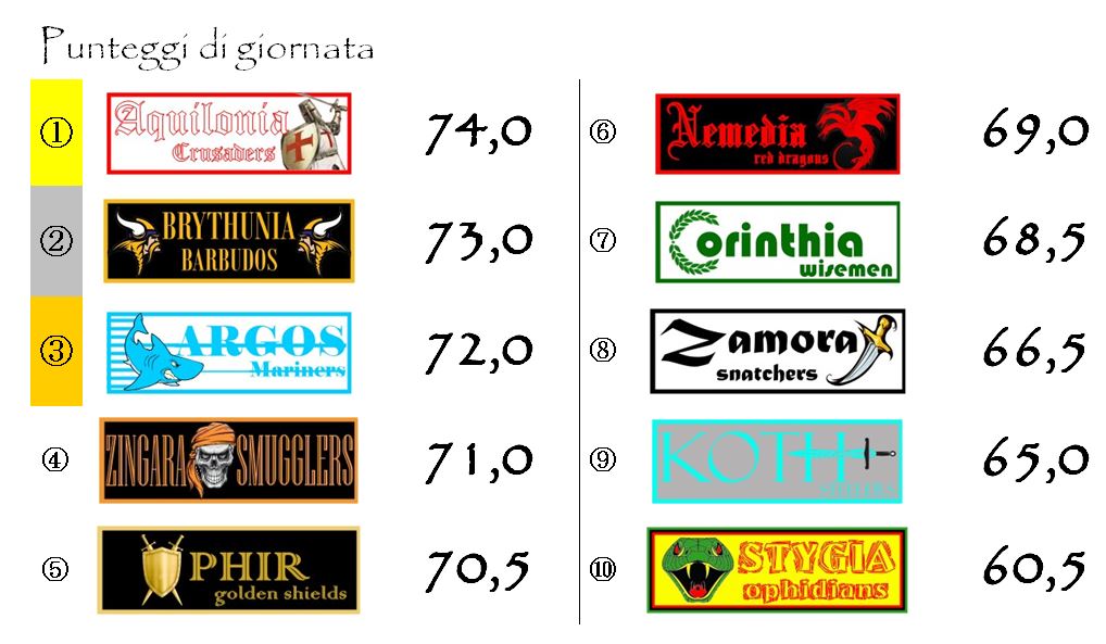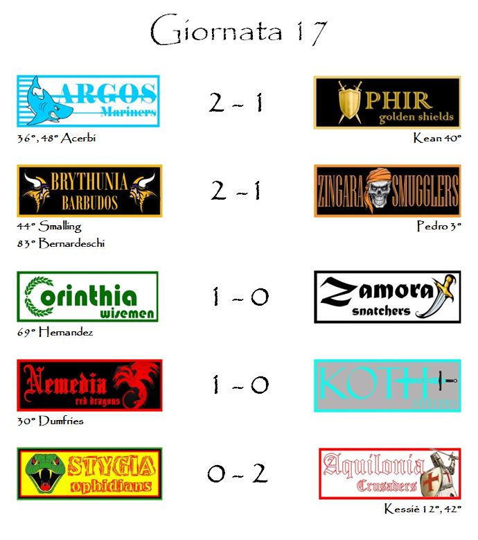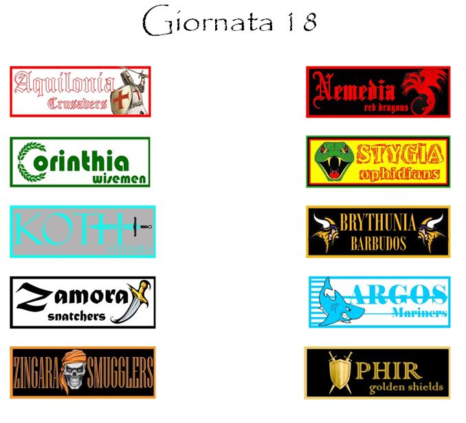 Al giro di boa ci troveremo il derby di Hyboria tra le due acerrime rivali Aquilonia e Nemedia, protagoniste nella scorsa stagione di un duello all’ultimo respiro per la conquista dello Scudo d’Oro.