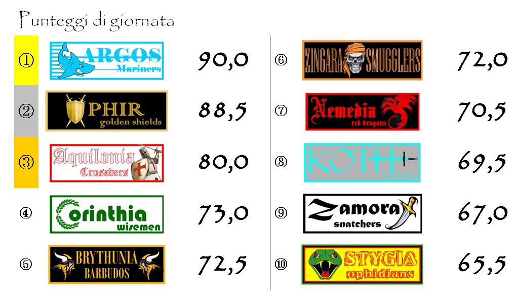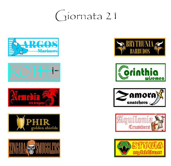 Zingara giocherà in casa contro gli Stygia Ophidians mentre la Nemedia ospiterà gli Zamora Snatchers.