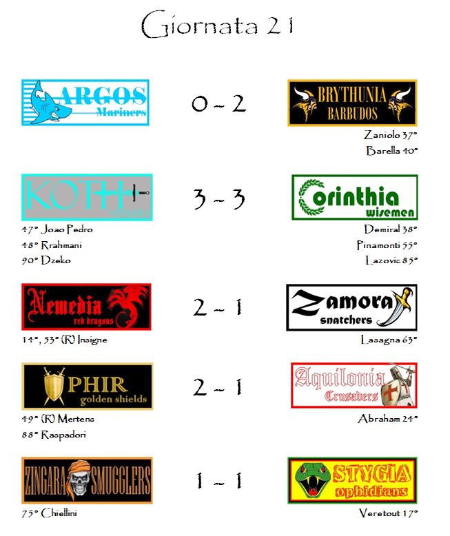 L’ultima gara in programma, quella tra Nemedia e Zamora, si è coclusa con una vittoria dei Dragoni per 2-1.