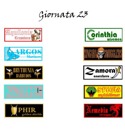 Ci saranno in programma ben due derby: quello dei Mari che vedrà di fronte Argos e Zingara al Kings Road Park di Messantia e quello dell’Est che vedrà affrontarsi Brythunia e Zamora al Monumental di Pirogia.