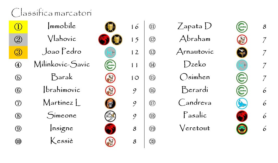 Tre sono stati, invece, i goals che non abbiamo potuto convertire in marcature extra utili alla nostra graduatoria: quelle di Tameze, Scamacca e Felipe Anderson.