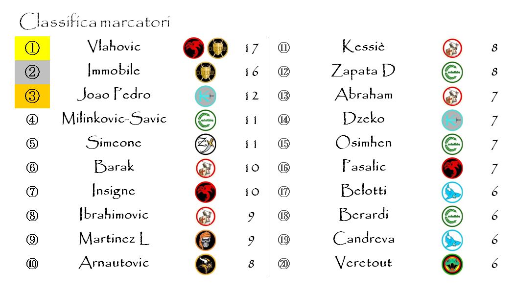La doppietta di Dusan Vlahovic contro gli Zingara Smugglers è valsa al serbo il sorpasso in classifica ai danni del suo ex compagno di squadra (e detentore del titolo) Ciro Immobile.