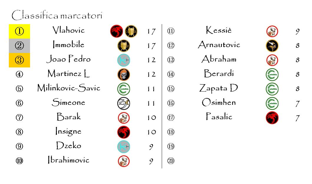 Hanno mosso la classifica anche Dzeko, Abraham, Berardi e Ciro Immobile.