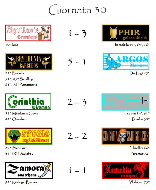 La trentesima è stata la giornata del passaggio di consegne tra Aquilonia e Ophir e della definitiva consacrazione di Brythunia Barbudos.