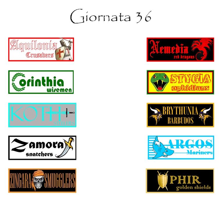 In programma in questa ultima giornata ci sarà anche il derby di Hyboria tra Aquilonia e Nemedia che si giocherà al Conan Memorial. Un derby in tono minore che servirà alle due contendenti solo ed esclusivamente a dare un senso compiuto al finale deludente di questa stagione. Chissà se i tanti prossimi partenti (Insigne più di tutti) riusciranno a chiudere in bellezza.