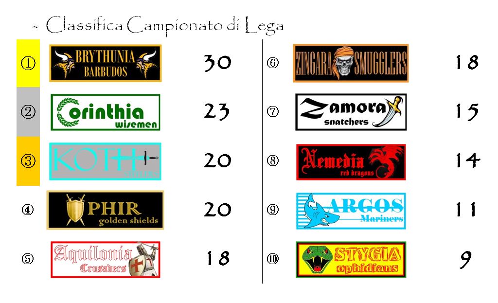 I Mariners, al terzo pareggio casalingo consecutivo, vedono riavvicinarsi sempre di più la Stygia e temono di essere risucchiati verso il fondo della classifica. Non che conti realmente qualcosa, visto che in Hyboria League non esiste la retrocessione, ma all’ultimo posto non ci vuole stare nessuno.