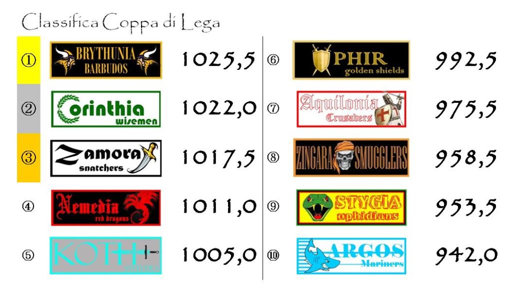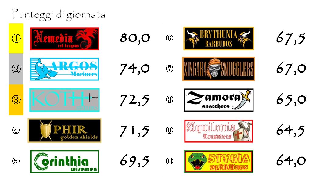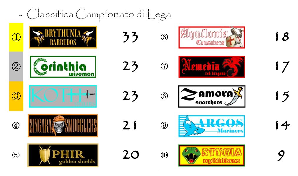 La prossima giornata che partirà tra meno di 48 ore vedrà la capolista Brythunia far visita gli Aquilonia Crusaders.