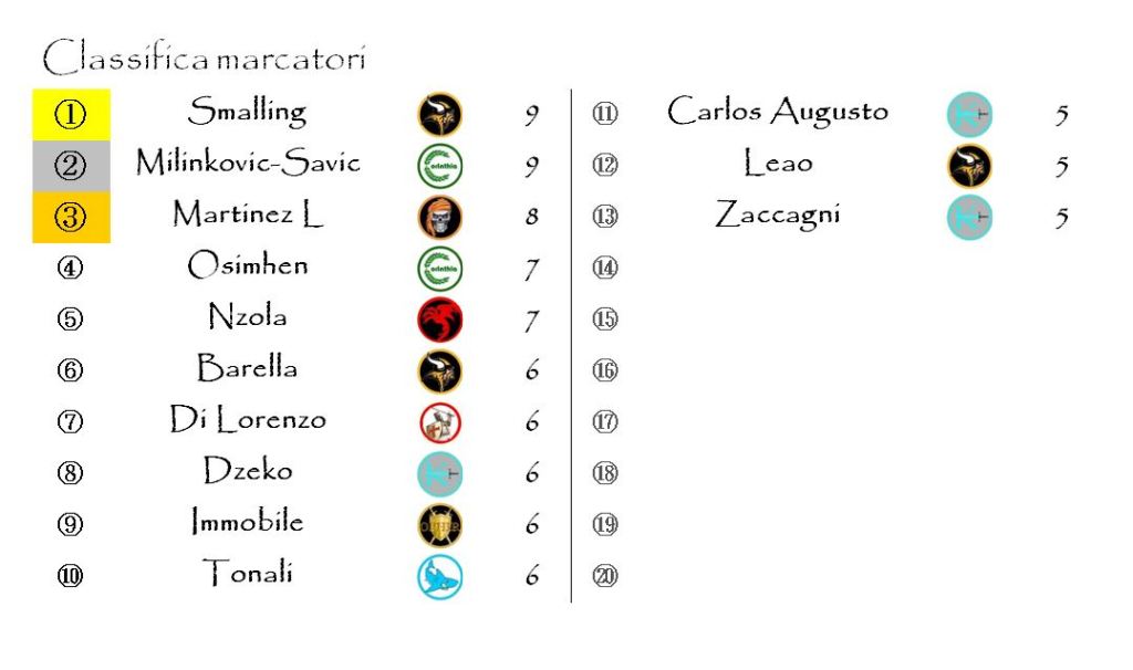 Una la rete che, invece, non abbiamo potuto convertire in una marcatura utile per la nostra graduatoria, ovvero quella siglata dal corinthiano Mimmo Berardi su calcio di rigore contro la Sampdoria.