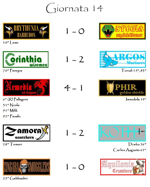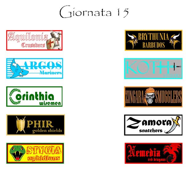 Il quadro degli incontri sarà completato da Ophir–Zamora e Stygia–Nemedia.