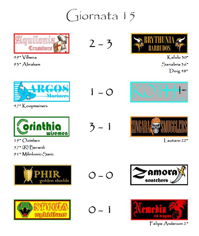 E con i risultati della quindicesima giornata è tutto.