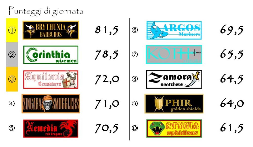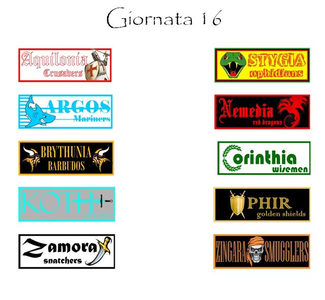 Il quadro degli incontri sarà completato da Zamora–Zingara, Argos–Nemedia e Aquilonia–Stygia.