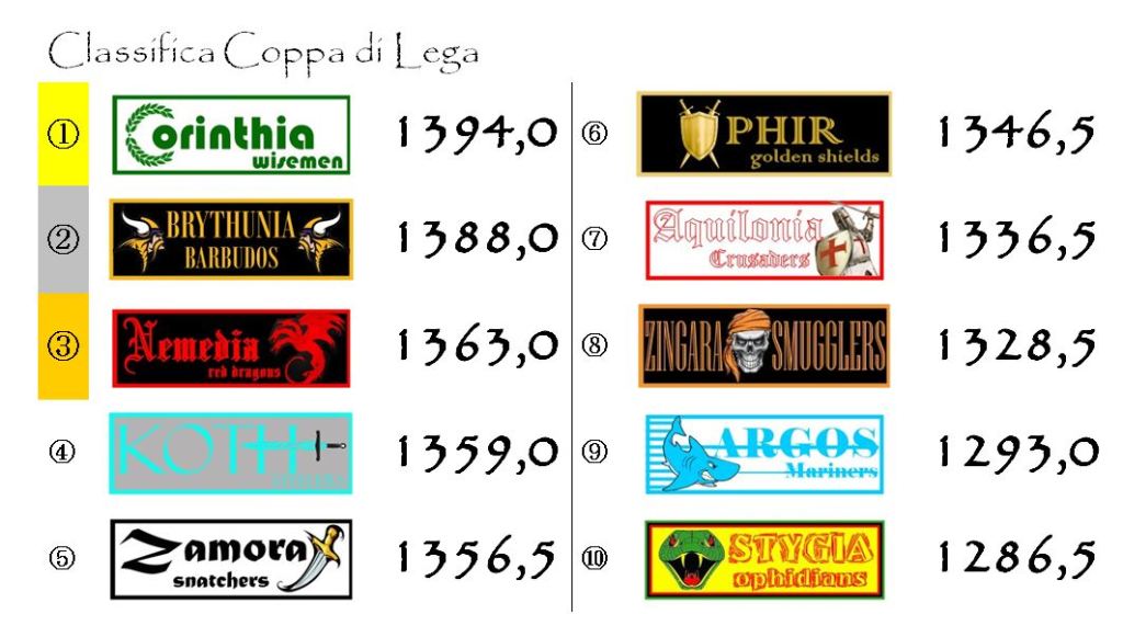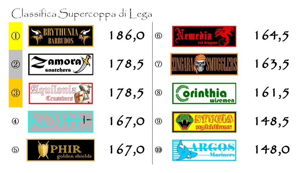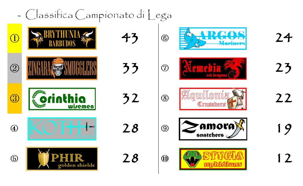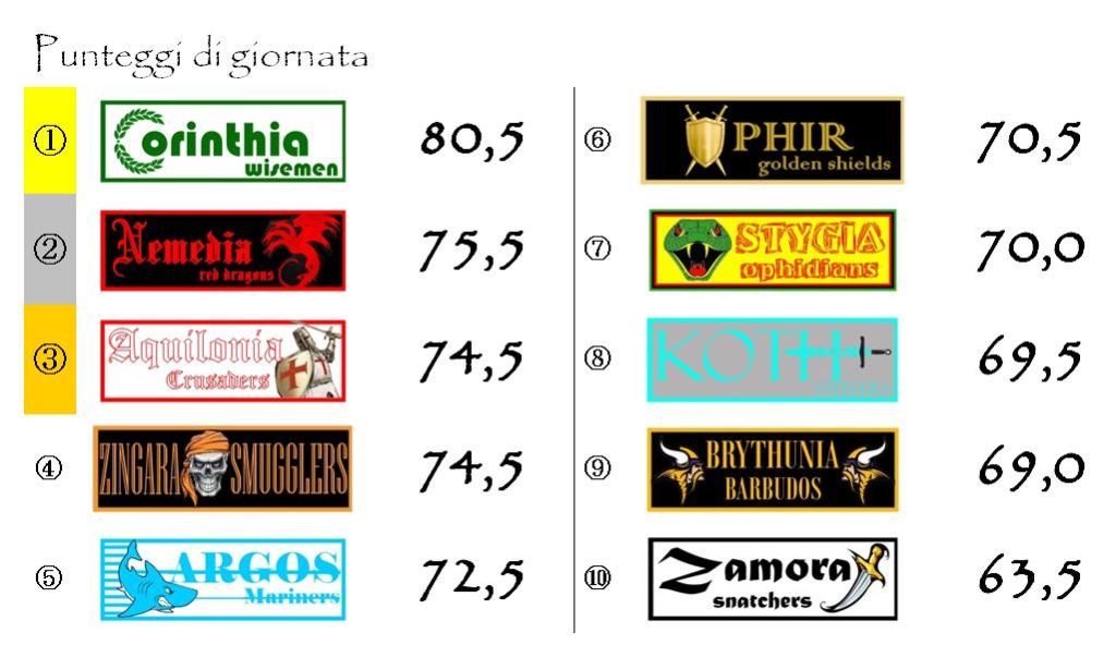 Il quadro degli incontri sarà completato dalla nobile sfida tra Aquilonia e Ophir e da quella un po’ meno nobile, ma ugualmente interessante, tra Zamora e Argos.
