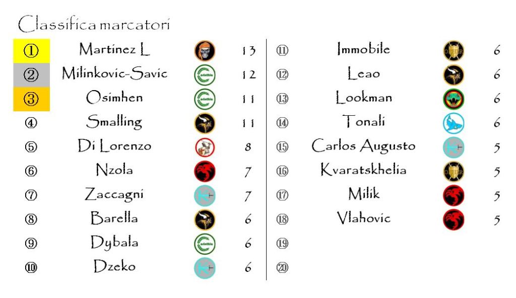 A chiudere il discorso ha poi pensato il capitano Lautaro Martinez, decisivo nel derby domenicale tra Inter e Milan e nuovo capo-cannoniere della nostra Lega.