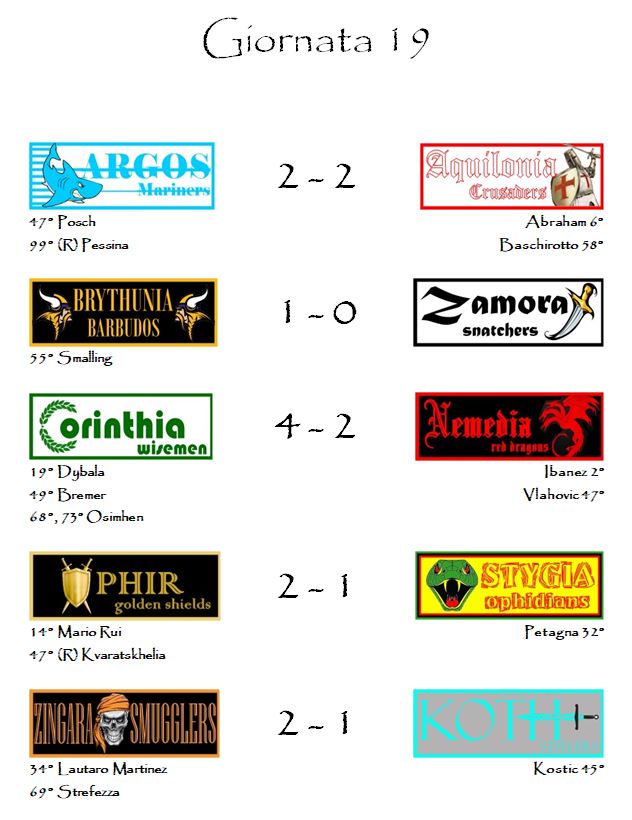 E con i risultati della diciannovesima giornata è tutto.