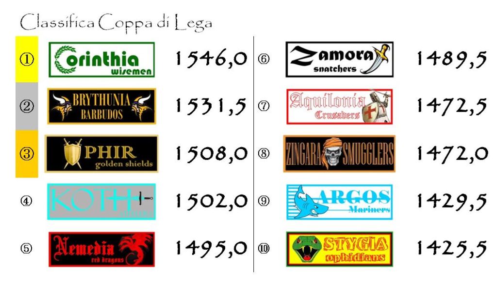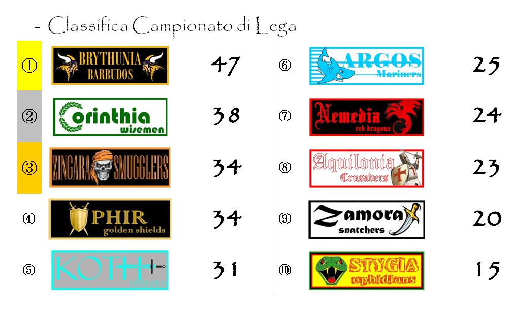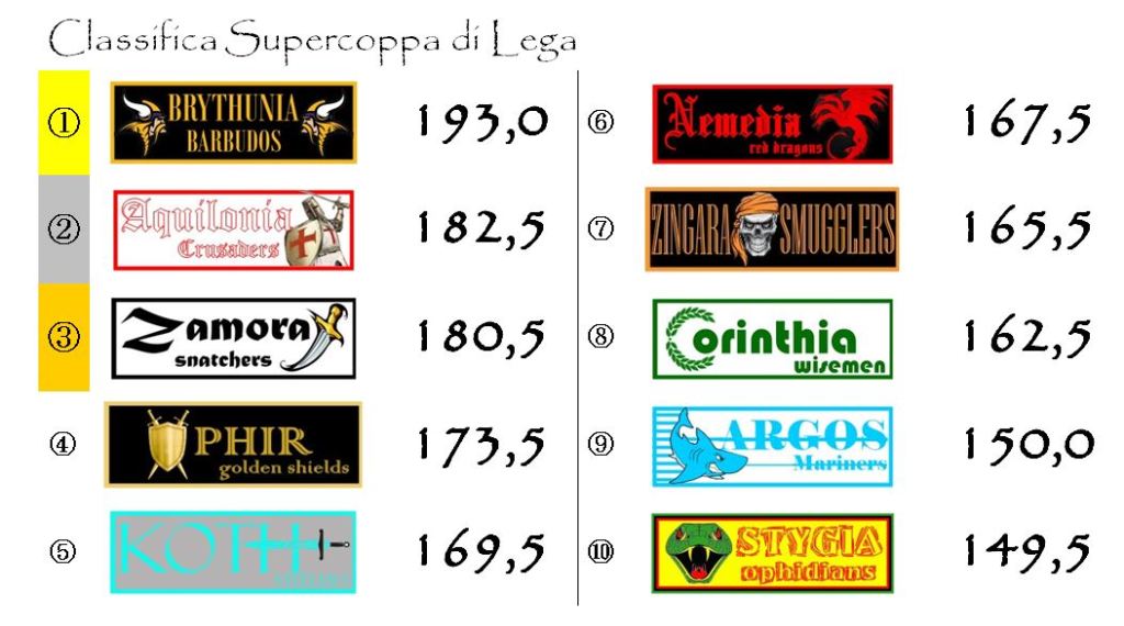 Il programma degli incontri sarà completato dalla sfida tra le franchigie gemellate di Koth e Nemedia e dall’incontro del Maul Camp di Shadizar tra Zamora e Aquilonia.