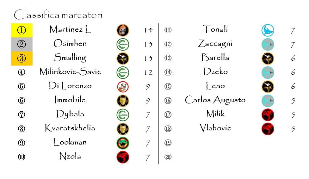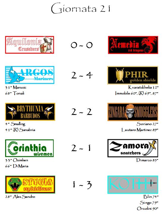 E con i risultati della ventunesima giornata è tutto.