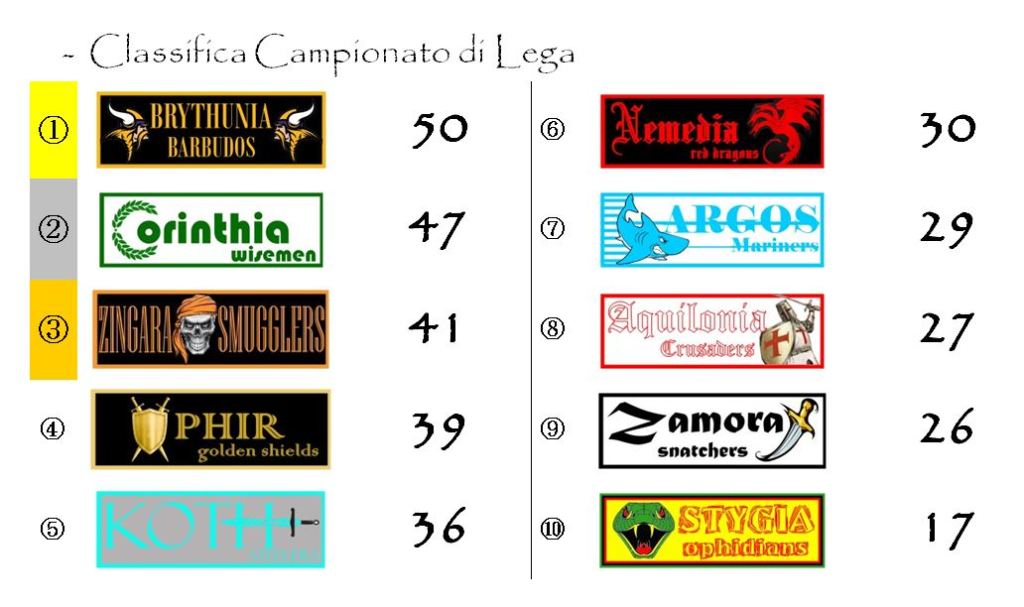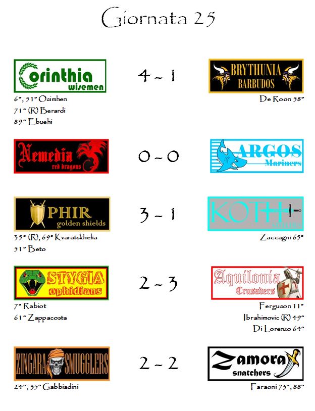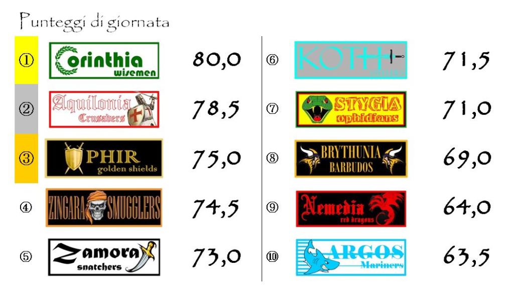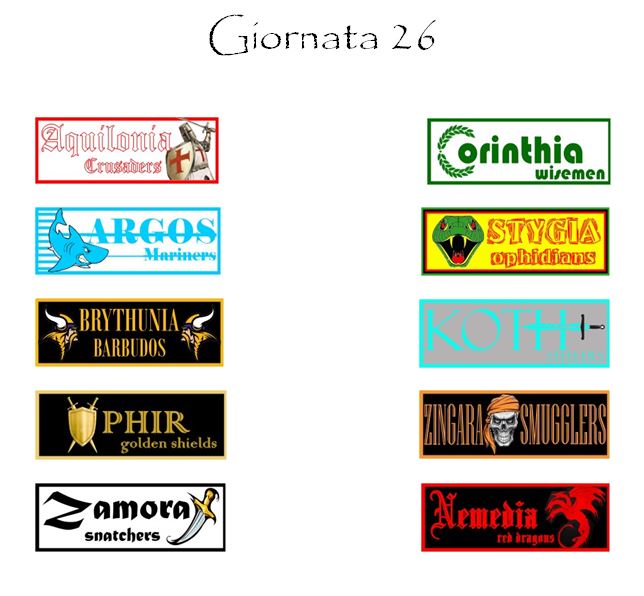 Il quadro degli incontri sarà completato dalle sfide tra Zamora e Nemedia e tra Argos e Stygia.
