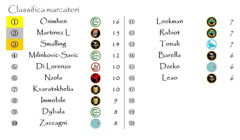 Tre sono stati, invece, i goals che non abbiamo potuto convertire in marcature utili per la nostra graduatoria: quelle di Kostic, Carlos Augusto e Hojlund.