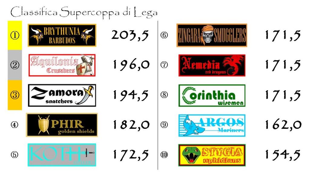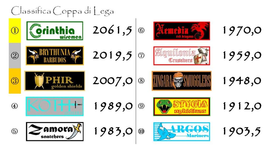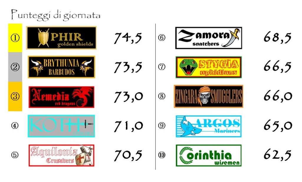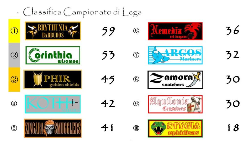 E’ proprio i duello per il secondo posto tra Barbudos e Golden Shields quello che potrebbe infiammare questo finale di stagione visto che la prima posizione di Corinthia sembra comunque blindata e che le uniche due squadre che potrebbe provare a rientrare nella corsa per il podio, Koth e Zamora, difficilmente vi riusciranno visto che hanno ampiamente mostrato di non avere la continuità per poterselo permettere.